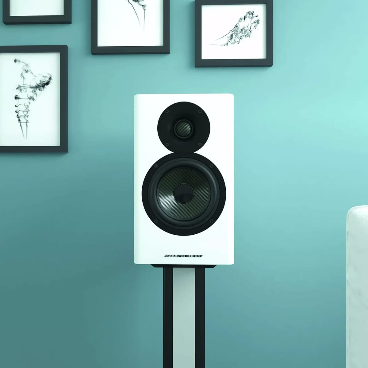 Wykończony w wyborze wykończeń fornirowych Piano Gloss Black, Piano Gloss White lub American Walnut, AE500 z łatwością zintegruje się z każdym wystrojem domu umieszczonym na stojakach głośników lub półkach z książkami.