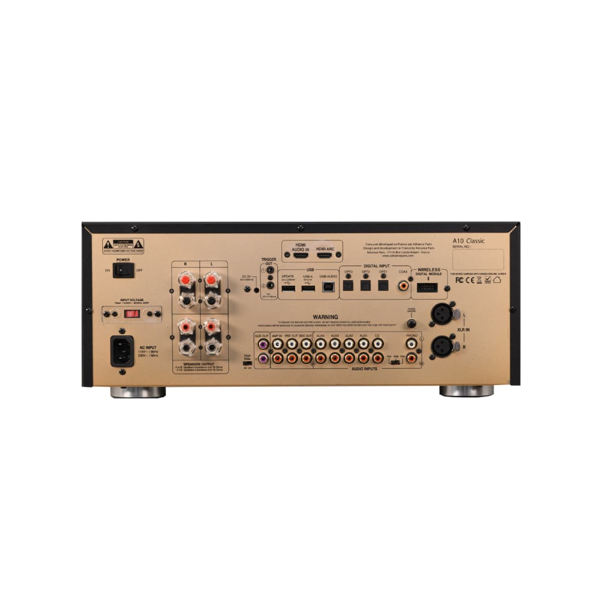 Z myślą o zapewnieniu maksymalnej kompatybilności, A10 Classic oferuje bogatą gamę wejść i wyjść. Sześć wejść analogowych, w tym dedykowane wejście gramofonowe MM z trzema ustawieniami pojemności, pozwala na podłączenie szerokiej gamy urządzeń analogowych. Zbalansowane wejścia XLR oraz pięć wejść cyfrowych, w tym trzy optyczne, jedno S/PDIF i audio USB, zapewniają elastyczność w konfiguracji systemu audio. Dodatkowo, dwie pary wyjść głośnikowych umożliwiają jednoczesne podłączenie dwóch zestawów głośników, co jest idealne dla użytkowników pragnących rozbudować swoje systemy audio.