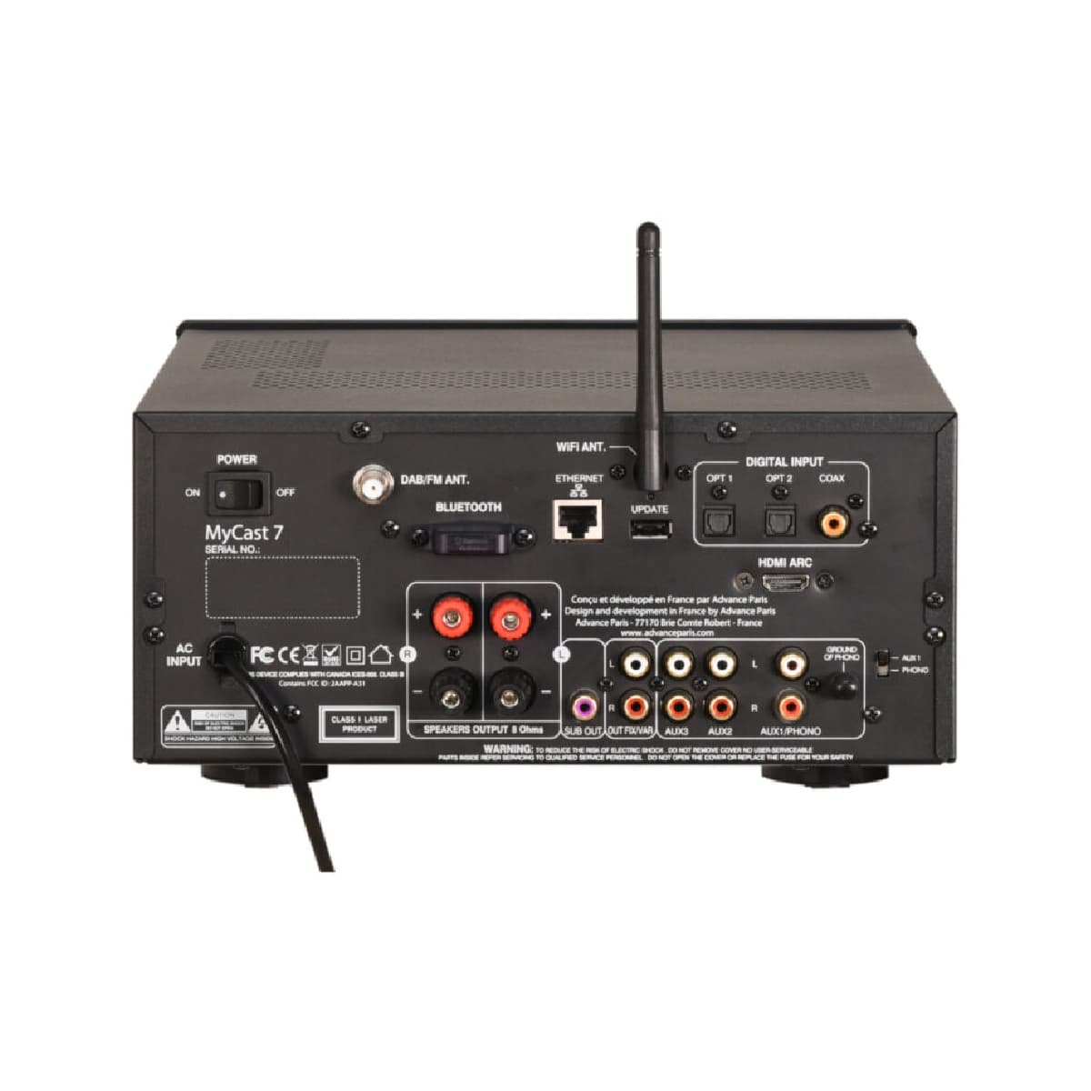 Mycast 7 to audiofilskie urządzenie typu „wszystko w jednym”, które zawiera m.in. wzmacniacz 2x45W w klasie AB, odtwarzacz sieciowy wi-fi i ethernet, tuner FM, tuner DAB+, odtwarzacz CD, USB, gniazdo HDMI ARC oraz odbiornik Bluetooth.