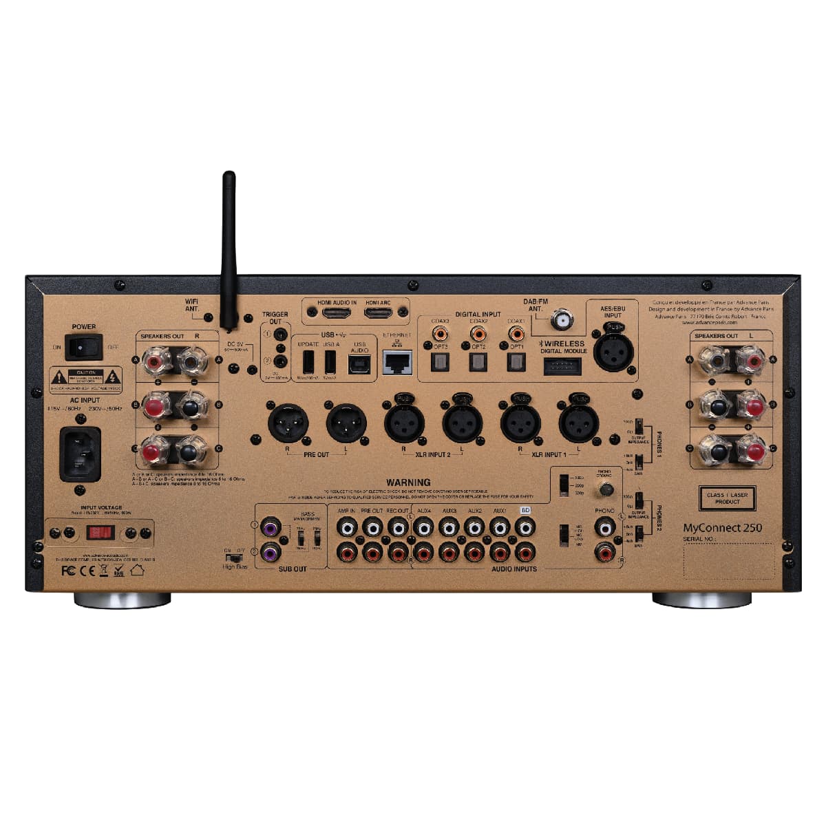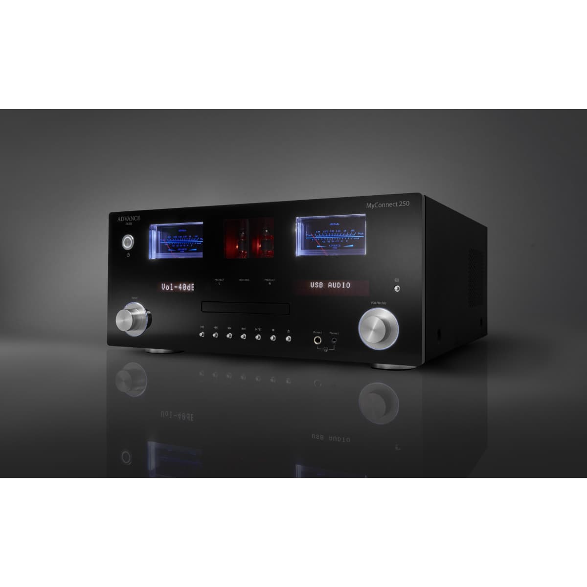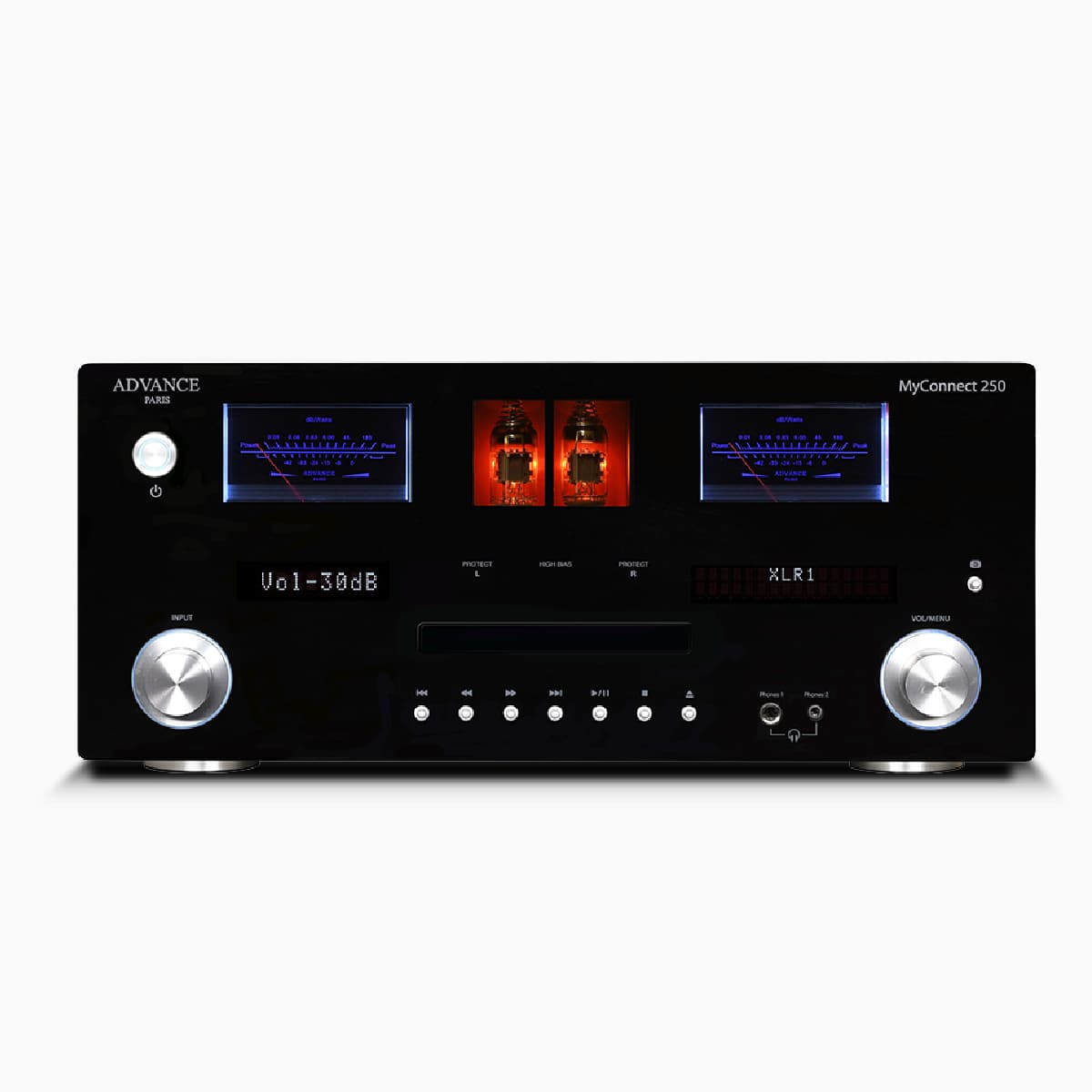 Prawdziwie wszechstronny audiofilski system – zintegrowany wzmacniacz Advance Paris MyConnect 250. Muzykalność tej elektroniki jest niezwykła i utrzymuje wysoki poziom na każdym z tych elementów. Opracowany przez francuskich inżynierów z Brie-Comte-Robert, został wyposażony w odtwarzacz sieciowy, odtwarzacz CD , tuner FM / DAB + i przetwornik cyfrowo-analogowy z portem USB. Całość jest ułożona w eleganckiej, sztywnej ramie z lustrzanym frontem. Znakiem rozpoznawczym firmy pozostają dwa wspaniałe podświetlane mierniki VU, a także dwie lampy. Zintegrowany wzmacniacz Advance Paris MyConnect 250 ma sekcję przedwzmacniacza lampowego, oferującą wyjątkowo głęboki i ciepły dźwięk.