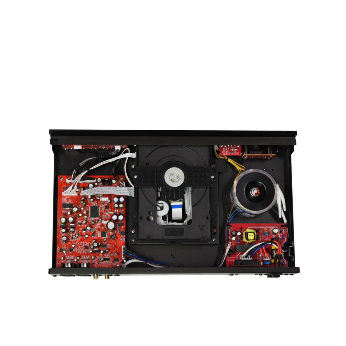 Transformator toroidalny zapewnia stabilne i czyste zasilanie wszystkich obwodów analogowych i cyfrowych, takich jak mechanizm CD, sterowanie laserem i przetwornikiem cyfrowo-analogowy (DAC).