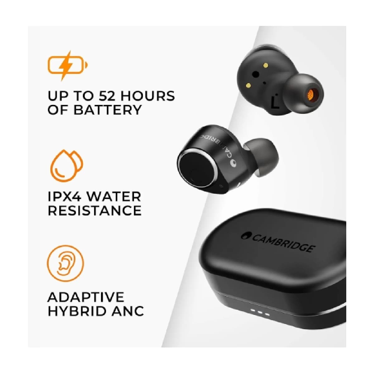 | WHAT'S IN THE BOX? | Quick Start Guide, USB-C to USB-C charging cable, 3 x silicone eartips (S, M & L), 2 x memory foam eartips (S & L), Brand booklet, Function controls card, Safety instructions |