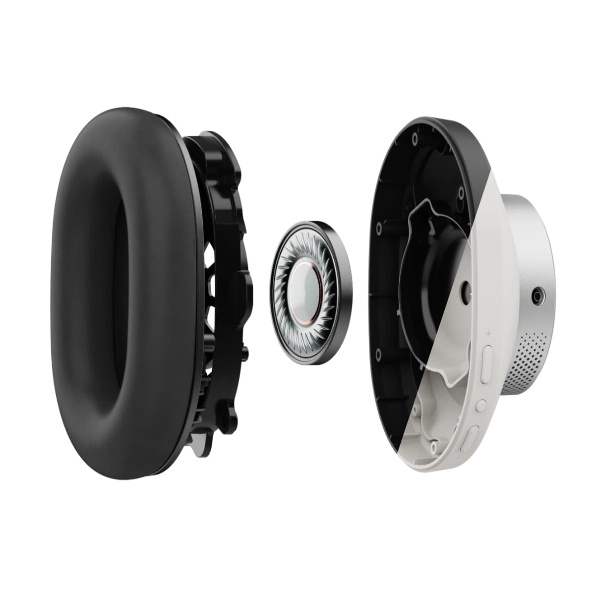 Nauszniki z wiskoelastycznej pianki z pamięcią kształtu i miękki pałąk z wegańskiej skóry zapewniają niezrównany komfort przez cały dzień. Lekkie aluminiowe detale zapewniają maksymalną trwałość, dzięki czemu możesz cieszyć się muzyką tak, jak powinna - w każdej chwili.