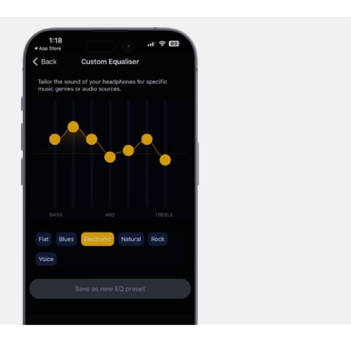 Dostroiliśmy P100, aby zapewnić precyzyjne wysokie i dynamiczne niskie tony, ale rozumiemy, że możesz chcieć zrobić coś własnego. Dostosuj swoje słuchanie dzięki Melomania Connect. Twórz własne ustawienia wstępne lub wybieraj spośród sześciu profesjonalnie wyselekcjonowanych profili.