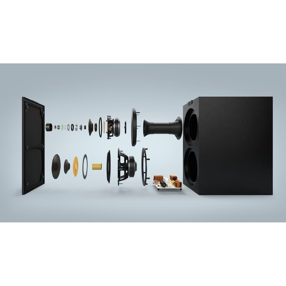 Kluczowym elementem serii Q jest wyrafinowana zwrotnica, która zapewnia płynną integrację wszystkich części głośnika. Dla każdego modelu głośnika wykonano ponad 1000 szczegółowych pomiarów.