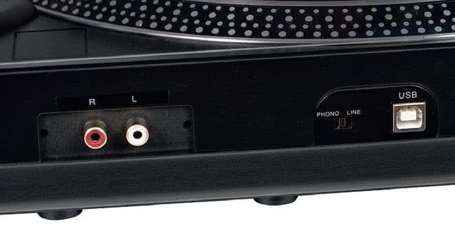 Wbudowany przedwzmacniacz umożliwia podłączenie gramofonu do zewnętrznego wzmacniacza audio, za pomocą uniwersalnego wejścia AUX (cinch).