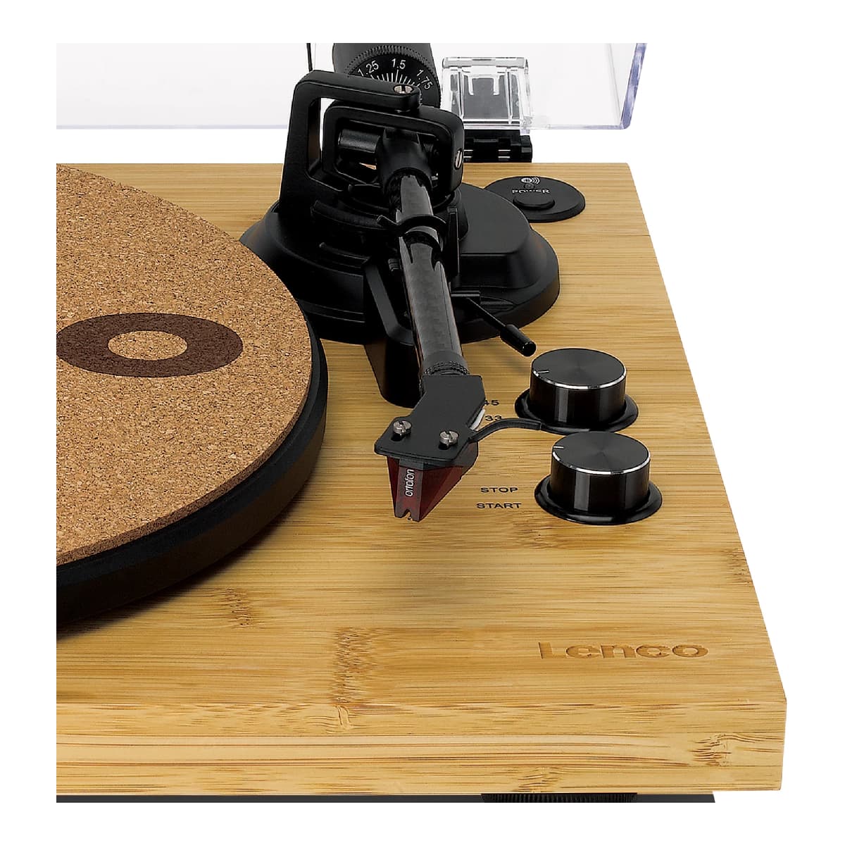 Lenco LBT-335BA jest wyposażony w mate korkową: Lenco TTA-030CO. Tekstura korka zmniejsza wibracje, zapewnia naturalną ochronę antystatyczną i zwiększa przyczepność, co powoduje bardziej stabilne i wyraźniejsze odwzorowanie dźwięku.