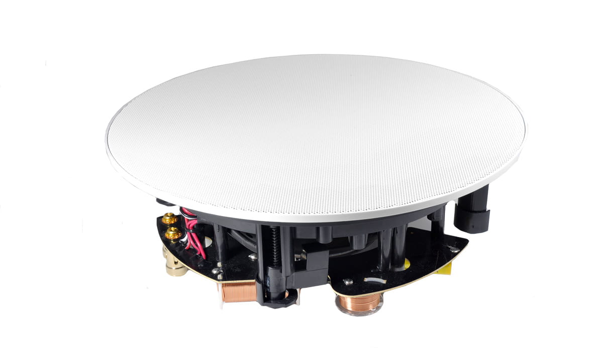 - zewnętrzny pierścień montażowy obudowy - niezależny od stalowego, tłoczonego maszynowo kosza głośnika, pierścień mocujący z łapami blokującymi; pozwala to skutecznie ograniczyć rezonanse przenoszone z głośnika na ścianę i ze ściany na głośnik