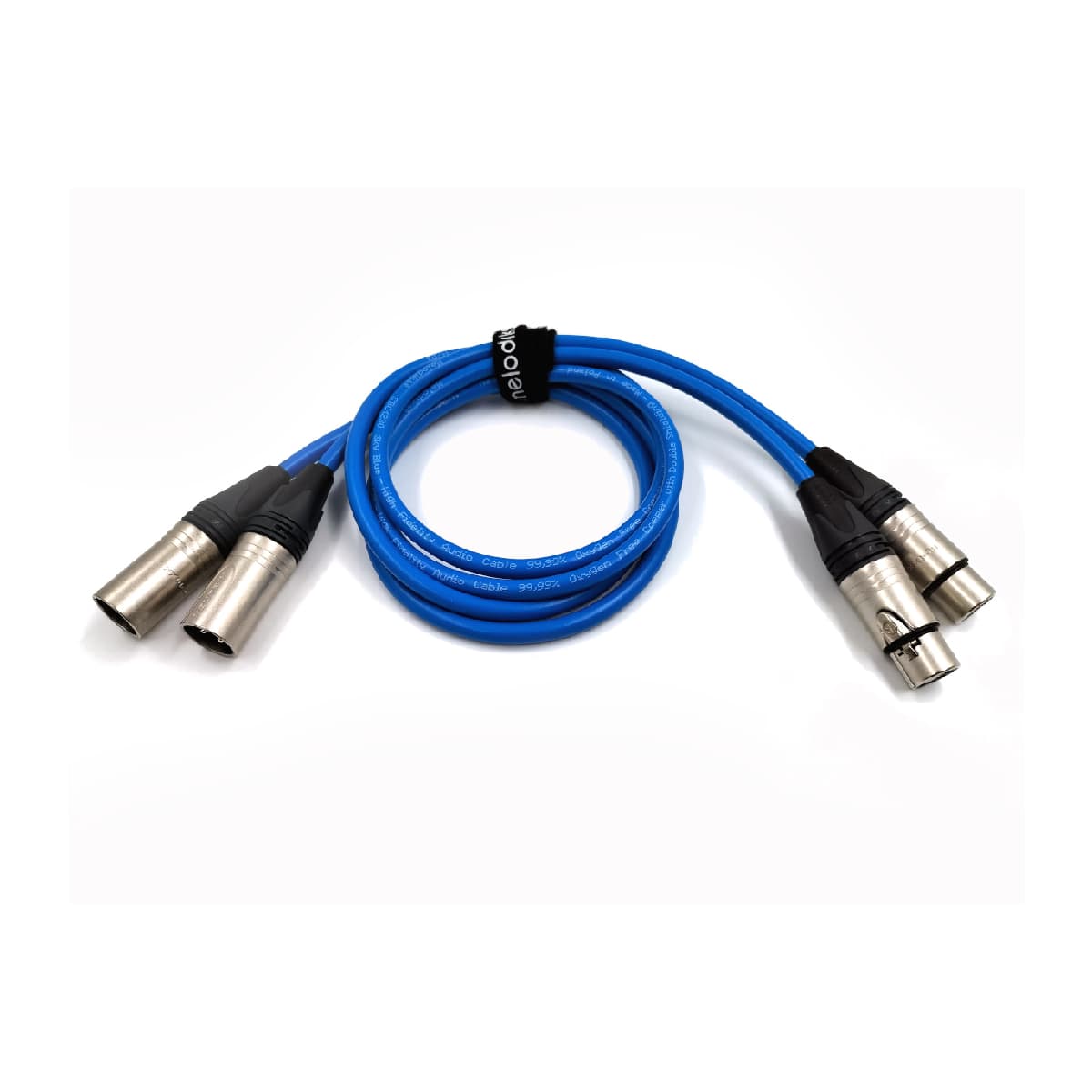Kabel jest zakończony solidnymi i wytrzymałymi wtykami XLR firmy Neutrik – męskimi z jednej strony i żeńskimi z drugiej. Wtyki te wyposażone są w dodatkowy styk masy, co zapewnia optymalne połączenie z obudową konektora. Przewód jest lutowany do wtyków za pomocą wysokiej jakości cyny z dodatkiem srebra, co gwarantuje trwałość i niezawodność połączenia.