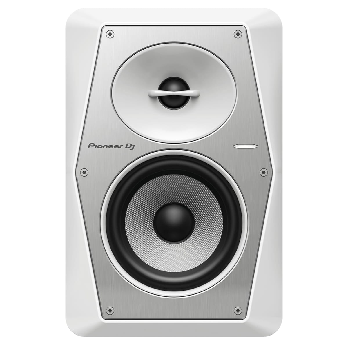 Zupełnie nowy wygląd sześciokątnej aluminiowej ścianki przedniej zapewnia efekt świeżości, a także lepszą jakość dźwięku oraz wytrzymałość. Redukuje niepożądane wibracje, zmniejszając poziom zniekształceń, a osłona ochronna głośnika wysokotonowego pozwala zmniejszyć ryzyko uszkodzenia membrany wysokich częstotliwości. Szczotkowana powierzchnia pokryta wykończeniem Alumite zapewnia głośnikom profesjonalny wygląd pasujący do urządzeń z serii Pioneer DJ.