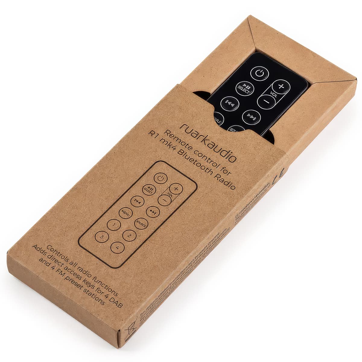 Opcjonalny kompaktowy pilot zdalnego sterowania dostępny dla R1 Mk4, R1S i R2 Mk4. Pilot posiada 4 przyciski bezpośredniego dostępu do zaprogramowanych stacji, dzięki czemu można łatwo zapisywać i wybierać ulubione stacje radiowe. Należy pamiętać, że ten pilot zdalnego sterowania jest kompatybilny tylko z R1 MK4, R1S i R2 Mk4.