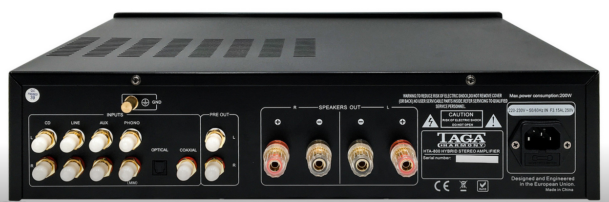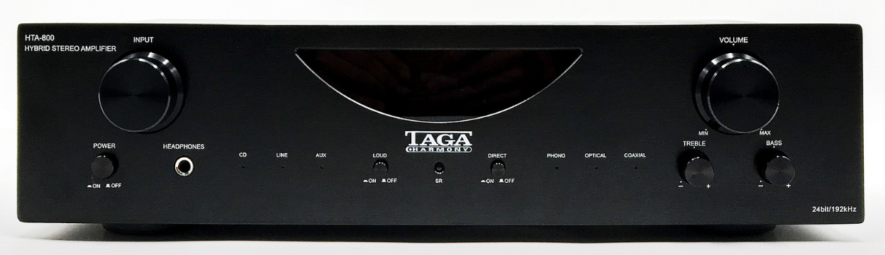 TAGA Harmony HTA-800 to wysokiej jakości zintegrowany hybrydowy wzmacniacz o mocy 50W / 8ohm, oparty na dwóch lampach 6N3 w sekcji przedwzmacniacza oraz czterech tranzystorów firmy Toshiba na wyjściu. Przy tym wszystkim nadal pozostaje ekonomicznym rozwiązaniem i zapewnia bardzo ciepły, liniowy i wciągający dźwięk cechujący się również dynamiczną prezentacją.