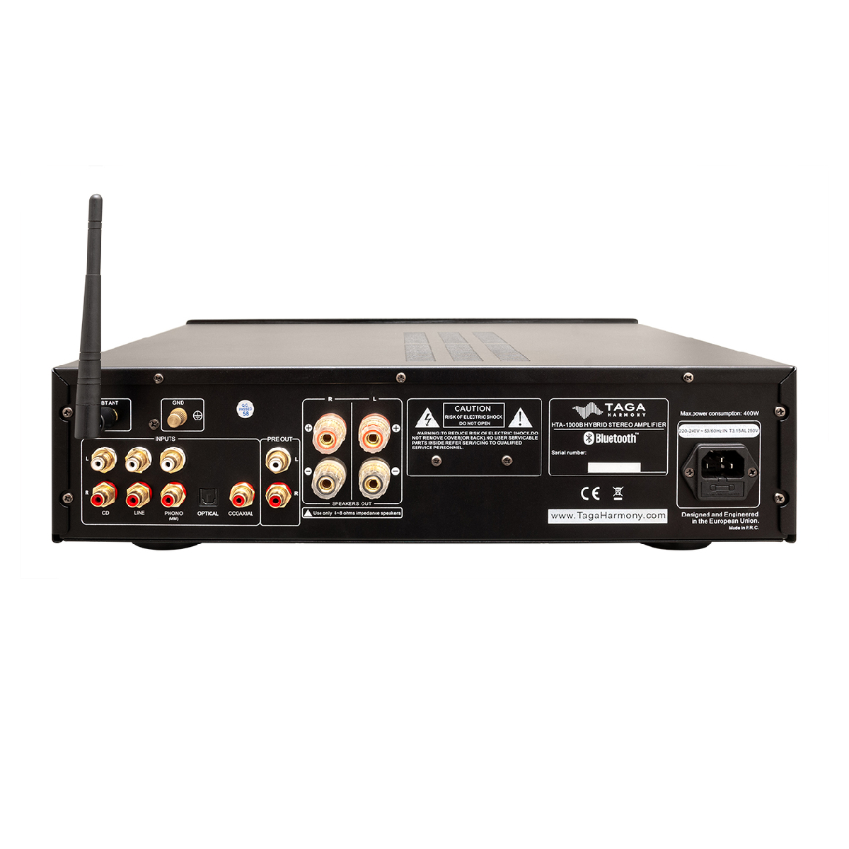 TAGA Harmony HTA-1000B to wysokiej jakości zintegrowany hybrydowy wzmacniacz o mocy 2x105W/8ohm wykorzystujący trzy wysokowydajne lampy PSVANE w sekcji przedwzmacniacza oraz cztery tranzystory firmy Toshiba na wyjściu. Takie rozwiązanie zapewnia bardzo ciepły, liniowy i realistyczny dźwięk o wysokiej dynamicznej prezentacji.