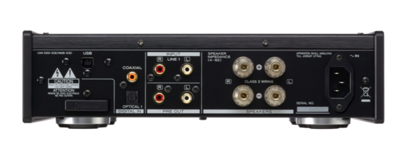- Dwie pary analogowych wejść RCA, a także USB, optyczne i koncentryczne wejścia cyfrowe (po jednym)