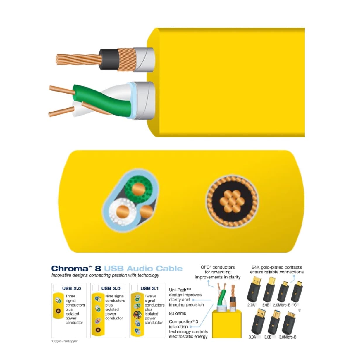 Kabel Chroma C3AB USB oferuje dobry stosunek jakości dźwięku konstrukcji Uni-Path i Composilex 3 do ceny nieznacznie wyższej niż standardowe kable. Podobnie jak i w innych kablach USB Wireworld'a, żyła zasilająca absorbuje wszelkie zakłócenia, co poprawia czystość sygnału muzycznego. Jego parametry transmisji sygnału są nawet wyższe od wymaganych przez oficjalny standard transmisji protokołu USB.